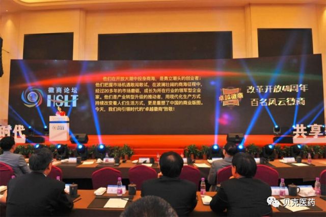 在2018中国国际徽商大会-徽商论坛现场, “改革开放四十周年,百名风云徽商”隆重发布,引起了全国各地媒体“长枪短炮”热烈关注。安徽贝克联合制药有限公司董事长王志邦先生荣膺“改革开放四十周年,百名风云徽商”之“卓越徽商”奖项。